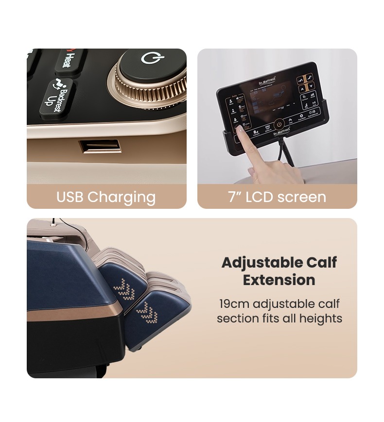 يوفر كرسي الراحة تجرية تدليك فاخرة وعلاجية مصممة لتخفيف التوتر والضغط على الراس الى اسفل القدمين ومع تقنية متقدمة لضمان جلسة مخصصة ومريحة مما يجعله مثالي للاستخدام اليومي المنزلي والروتين الصحي لتعزيز الاسترخاء وتحسين الصحة العامة